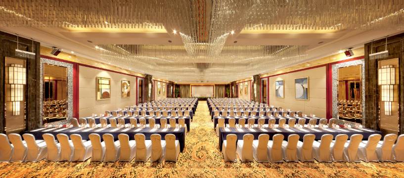 饭店主楼高32层,总建筑面积近8万平方米,拥有客房、行政酒廊、中餐大厅、26间豪华的中餐包房、中西自助餐厅、源料理、千人宴会厅、13个豪华会议厅、健身房、KTV等配套设施。
