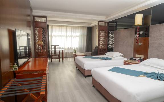 宾馆环境好且优雅,房间大且卫生干净整洁,服务员态度热情,自助餐品种丰富味道好。赞👍🏻👍🏻👍🏻