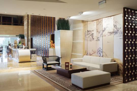 位置绝佳:酒店位于富阳区经济、商业和文化的中心,地处富春江边,与有着浓浓“三国”气息的东吴文化公园和素有华东文化名山美誉的鹳山毗邻而居,南可见富春江上船只点点,北可赏鳞次栉比的城镇风光。