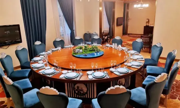 中心可同时容纳800余人用餐,各类包厢25间、大小宴会厅5间,菜肴以本帮淮扬菜为主,注重开发改良地方农家菜和小野味,充实一些高档杭帮菜和地道川菜,已形成了自己的饮食风格和特色。不论是商务出行还是旅游度假,在这里都能得到方便、舒适、温馨的贴心服务。