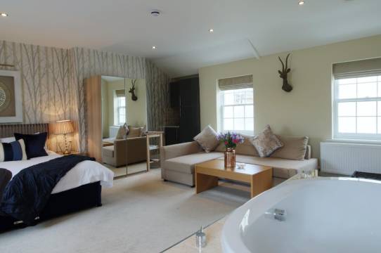 我们预订了套房,足够四个人住。非常喜欢这家酒店的整体氛围和它的洁净度。楼上的卧室里还有一个按摩浴缸,配有豪华浴袍。两层楼都有电视,浴室里除了牙膏,其他洗漱用品一应俱全。咖啡吧台提供各种茶、咖啡、热巧克力以及一些饼干。