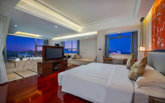 和家人一起旅游,选择了这家酒店整体服务,非常满意,酒店位置绝佳靠近商圈和主要景点出行游玩,十分方便,周边餐饮购物选择性多生活便利酒店,外观大气,大唐环境优雅,服务人员态度友好,从进门引导到办理入住都很贴心,有超大停车场,可以给电车充电停车场,免费房间宽敞明亮布局合理装修温馨舒适,卫生打扫的很干净,没有异味和四角床品柔软舒适,睡眠体验很好,房间设施齐全,空调效果好,隔音效果好,晚上休息很好,卫浴干净清爽,洗漱用品齐全,热水稳定,有提供儿童拖鞋牙刷,视野很开阔,居住很放松,酒店配套完善公区干净整洁,环境安静,舒适早餐种类丰富,菜品新鲜,味道可口,酒店服务细致到位,性价比很高,非常适合旅游度假