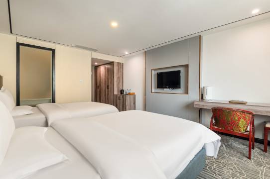 酒店在市区,出行特别方便,因怕吵要求安静房,前台小姐姐挺热情,安排的新装修过靠小区位置房间,安静,舒适,让人心情愉悦。大门旁边的酸汤牛肉也非常不错