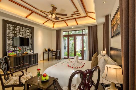 这次住宿真是太棒了!房间非常宽敞。床很舒服,我们还能看到漂亮的花园和泳池景观。超爱浴室里那个巨大的浴缸!早餐也很棒,有各种水果和可以现点的煎蛋卷。位置极佳,靠近河边和老城区,但又远离喧嚣,非常安静。酒店提供免费自行车租赁,早上骑车去看看稻田,在城里转转感觉很棒。工作人员都非常友好、热情且乐于助人。唯一让我有点不舒服的是,醒来时床边有一只蟑螂,不过它已经死了。但总的来说,这是一次愉快的住宿,我会推荐给所有来会安旅行的人!这是我第一次睡得这么安稳,完全没有外界噪音!锦鲤池也很令人惊艳!