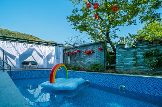 民宿拥有超大露台,可以享受到高山观日出的景观,交通设施方便,是入住的理想选择,并提供中餐、儿童餐,可供选择。民宿门前有游泳池,房间每日打扫,更换洗漱用品,另外民宿配备影音室、KTV、供您和朋友尽情嗨唱,儿童游玩区能让您的宝贝尽情玩耍,空闲时候可以去茶室品品茶,和老板聊聊天,可以给您提供专业的旅行攻略,老板烧的一手好菜,让您体验到地道的当地农家美食,也可以提前预定烤全羊、烤乳猪等特色大餐。来民宿,带您体验不一样的莫干山风土人情~