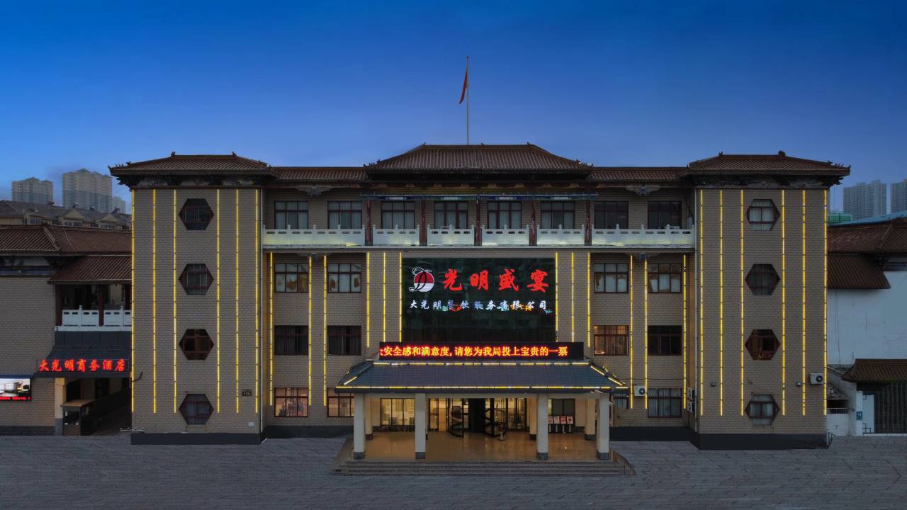 酒店隶属于邯郸市大光明餐饮管理服务有限公司旗下商务酒店,集客房、会议、餐饮为一体的的高端商务酒店,位于邯郸市丛台区铁西进大街159号,距离邯郸市火车站、汽车站交通便利。营业面积3000平方米。现有客房67间,拥有豪华典雅的外观,温馨舒适的环境,专业的服务团队,超大的地上免费停车场所,酒店有多个会议厅容纳可50-1000人,满足不同会议需求,配套光明盛宴餐饮,是您宴请客人的理想场所。