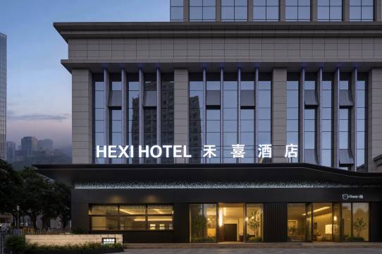 禾喜智慧酒店位于重庆市铜梁区东城街道中兴东路615号(潜能燃气大厦,第14-17层)。“HEXI HOTEL禾喜酒店” 的招牌明亮醒目,入口处的灯带与星点装饰轻缀其间,既勾勒出利落的建筑轮廓,又为城市街角晕染出温暖雅致的光影,让每一次抵达都如一场精致的开篇。