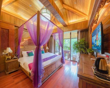 客栈有独立的院落,背靠湄公河,是一个天然氧吧。大堂大气典雅,采用老挝花梨木和泰国柚木装修,淡淡的木香味,给您的入住带来不一样的享受;房间有多种房型供不同需求的客人选择,纯泰国柚木和古典实木雕花相结合的风格,彰显傣族人民的神秘、热情、好客的品质。家具由傣式雕花老木打造,床垫为高档进口慕思品牌,星级品质,天然橡胶垫加独立弹簧筒打造,给您一天游玩后高品质的睡眠享受,各个房间都有独立的阳台。安静的周边环境如世外桃源般感受,早晨的虫鸣鸟叫声,开启您一天美好的旅程。
