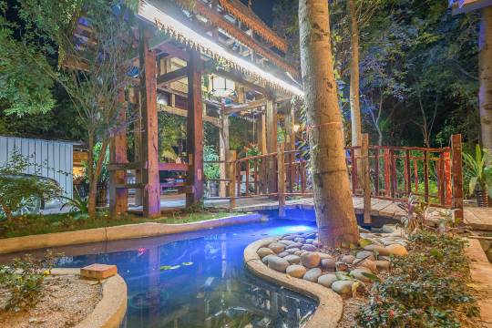 酒店傣式建筑,很有特色,也很有东南亚建筑的美感,距离星光夜市步行5分钟,很方便。