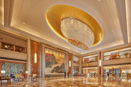 地理位置很好,离泰山站很近,不到2公里。离泰山也很近,打车十几分钟。酒店大堂很气派。大堂里有各种纪念品和特产售卖,购物吃饭都很方便。落地窗可看见泰山,街景也很不错。房间不错,设施不错,卫生良好,服务到位。不足就是酒店电话是自助语音服务,有时不太好联系前台。总体非常满意