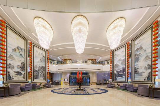房间设计风格很中式,卫浴干湿分离很方便,大堂环境不错,四幅壁画很漂亮,早餐很丰富,中西式结合的餐食很美味,周边交通很便利,吃喝玩都很多,入住的酒店家庭连通房,对于家庭出游非常方便。前台和值班经理微笑很亲切,对我提出的问题都认真仔细的回答,并能够提供周到的帮助,值得推荐!!