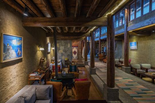 酒店以纳西,藏式建筑特色的酒店,内部装饰也体现了浓郁的民族风格及现代化的舒适享受。不同的庄园内设了小型会议室,书吧、西餐厅,楼台,后花园,唐卡工作室及宽带等人性化的服务设施。走廊设计成梯台式的卡座,可让您在此休憩和分享下午茶。如您需要在庄园内烧烤可以安排露天阳台,在您品尝到美味佳肴的同时也可感受香格里拉杜克宗古城及城堡的美景。