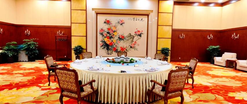 云南震庄迎宾馆拥有多类型不同风格会议室,多功能厅、牡丹厅、修楼、会见厅以及贵宾休息室等不同用途的会议会见用厅室。综合楼多功能厅是集多种会议功能于一体的会议厅,最多时可容纳200人。配备了高清数字显示大屏、演示视频电视、一流会议音控系统等会议先进设施。白色大穹隆顶映衬之下,金色锥形水晶大吊灯使厅内金碧生辉却含蓄有度。大幅的花卉沙面浮雕,将中国倍受文人政客喜爱的荷,牡丹、兰、梅等花卉图案,用现代设计艺术手法表现得美伦美焕。同时又代表了震庄历史悠久与时俱进的想法。