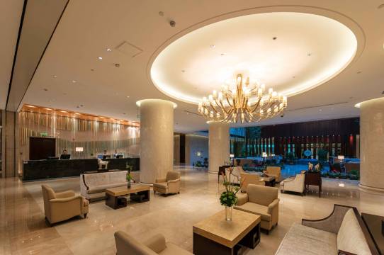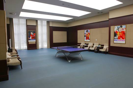 宾馆占地面积1200亩,建筑面积33万平方米,湖面面积5.4万平方米,绿化率高达70%以上,娱乐健身中心设有室内游泳馆、国际标准网球馆等,为宾客提供优质、温馨、体贴、周到的服务。