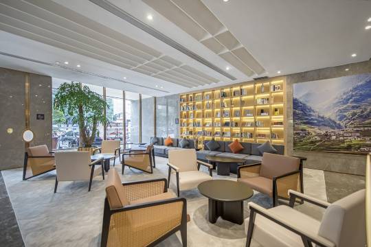 酒店附近公交地铁出行都挺方便,施梦、祁放服务热情周到,机器人送物很快,房间干净整洁,大厅还有图书借阅区域,非常好,下次还来,