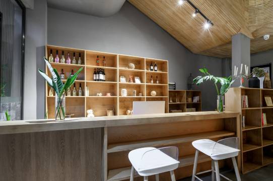 各处寻找,不负有心。一年有半,觅宜宾丽雅龙城一处落户,取名“拾捨·竹里馆”。竹有花深埋,素面朝天,曰质朴。