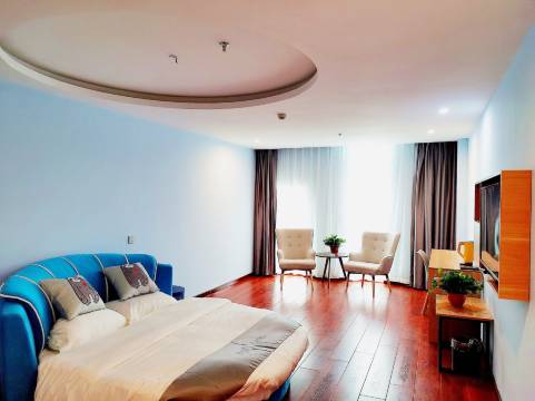房间布置得很温馨,床又软又舒服,晚上我睡得可香了。房间里的设施也都很新,电视、空调、热水壶这些都完好无损,用起来很顺手。卫生间打扫得干干净净,没有一点异味,洗漱用品质量也不错。