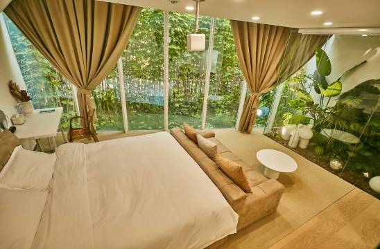 其北欧INS风的建筑风格,加上山间美景,让时尚生活多了一种选择和舒适,回归山间的隐居状态,使人得以享受一种安静!