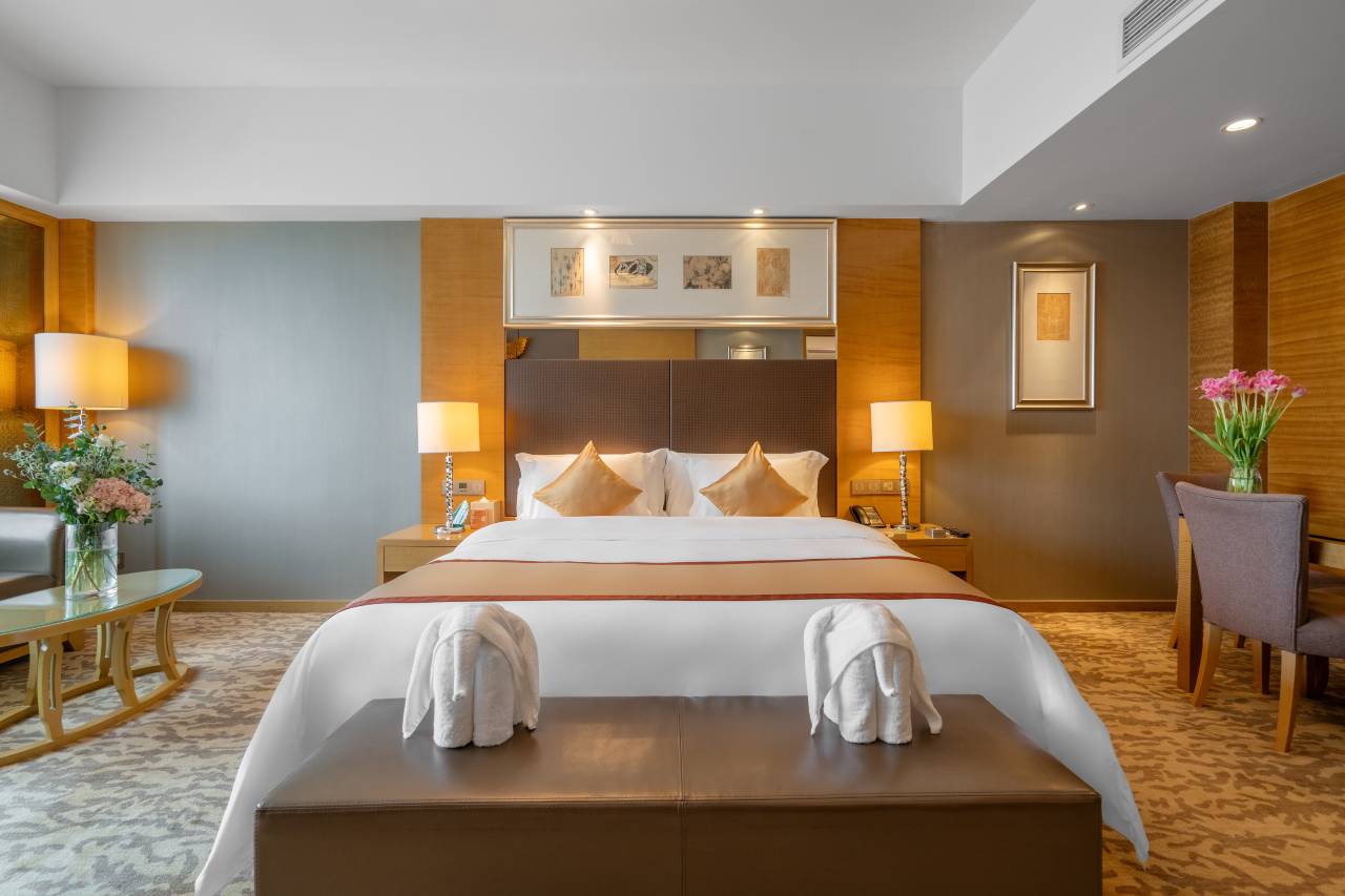 家庭房的房间非常大,干净整洁,住酒店的客户还可以免费享用酒店的泳池,我家小朋友天天去🏊,早茶好吃,晚餐也好吃,分量非常多,工作人员服务好,非常棒的酒店,五星好评,工作人员黄兴伟服务非常好👍