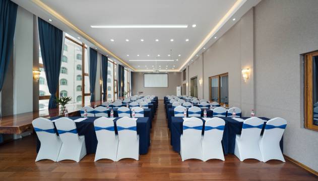 酒店接待大堂约450平米;酒店餐厅为3层楼,1楼为大厅,2楼为包间, 分为大小包间5间,其中大包间2间。3楼为会议室、棋牌室。酒店分为大小两个停车场,车位合计约60余个。