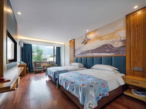 简直超出想象的好👌原本对酒店和住宿没有太大的期待,但是这个酒店真的让我很震惊的好!外观和房间都比较新,是个类似四合院的建筑,拍照出来还挺好看。其次,我们定的原房型是大床房,免费升级成了套房,还有小零食,客厅和卧室都有两个大电视!环境好、卫生好、隔音好,最重要的还是服务员的态度特别好,整个酒店的服务都非常满意👍非常贴心!走的时候还送了我们当地产的花椒作为礼品🎁真的以后再来或者朋友家人来都推荐给他们。理县太多人了,还不如就来雪山下的茂县休息一天,第二天再去理县,我们就是从重庆过来,先到的茂县!棒棒棒!