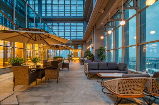 酒店在高楼层,有专用电梯,需要警卫刷卡才能进入电梯间,安全度高。大堂宽敞明亮,早餐丰富,有很大的观景平台,房间大而高,宽敞舒适,服务人员都很nice,前台禾夜专业热情,升房寄存行李帮着加热食品,餐厅食档的阿姨还主动帮忙打包馒头包子给选手。早上有大巴送赛,也给延迟退房。