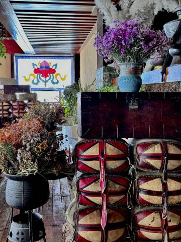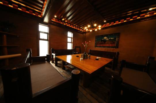 老板是个帅气的藏族小哥哥,人很好,帮忙提行李,推荐好吃的餐厅,他家二楼也有餐厅,味道也是很棒的,装修也特别独特,入住还送了我们一大桶矿泉水,值得推荐哦!