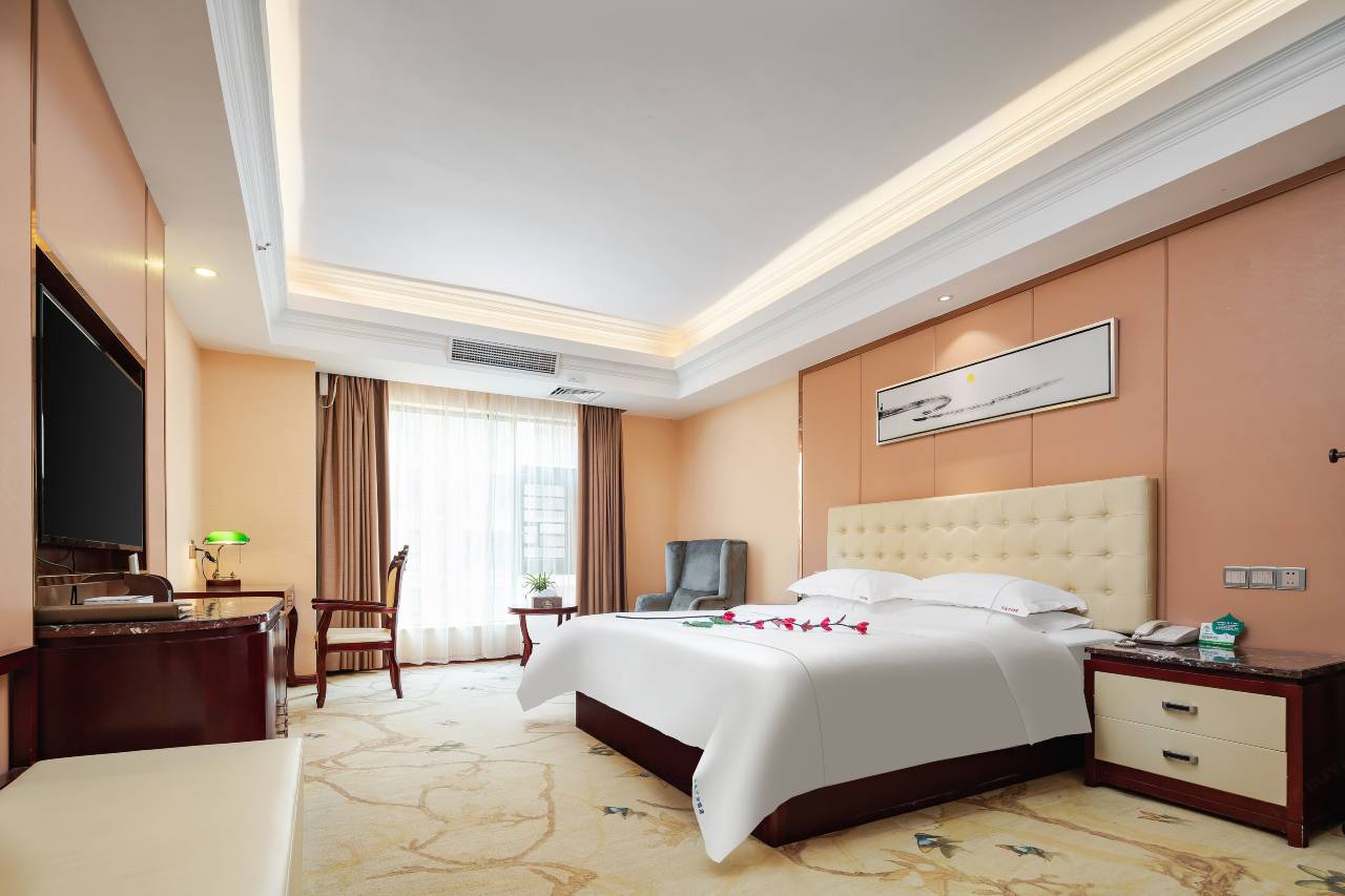 国庆定的价格性价比高,早餐也好,停车位嗯,有两个停车场,有地下的和地上的服务也好呃,出来就是一条食街嗯,晚上吃宵夜不成问题,虽然不是在市中心的广场附近,但是性价比真是无敌了,国庆期间200不用包早餐,我这个酒店应该之前是个品牌的三星级酒店,竟然有地毯证明可能以前是高档的,房间也大,后面是学校,也安静,不错,可以下次再来