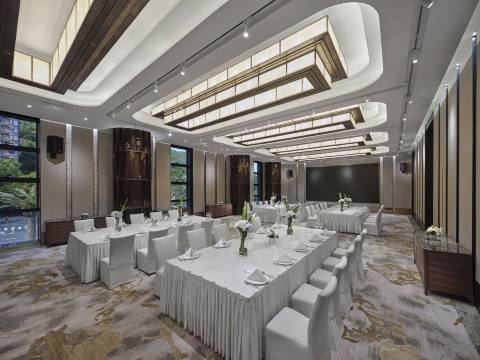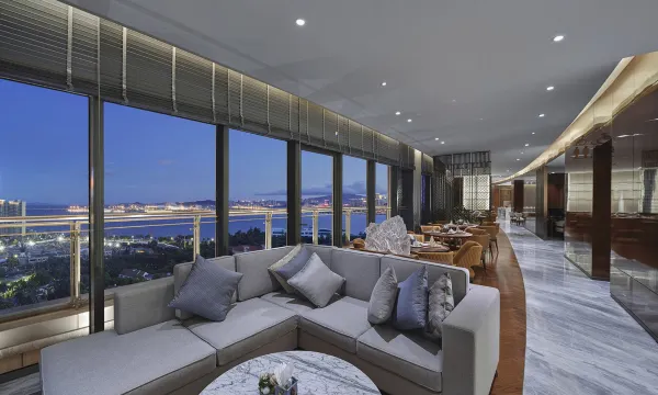 酒店位于吉大石花东路,按照城市标志性建筑打造,彰显海滨度假胜地特色,设计风格强调崇尚自然。其总建筑面积59007平方米,地上建筑面积约39191平方米,地下建筑面积约19816平方米。新酒店主楼十七层,客房203间,还完美打造了一个8000平米的室内康体中心馆。豪华观景客房不仅按照行政接待需求打造,通透的幕墙还拓展了宾客赏景视野。在山-湖-海景套房内,近能观赏石花山及天鹅湖和爱心岛的草木、花园,远可眺望九洲港和港珠澳大桥及拱北湾和澳门风光。