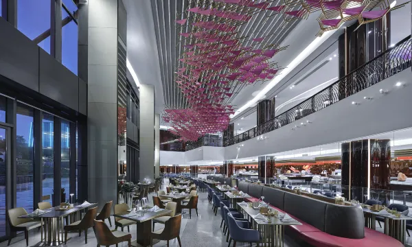 来珠海旅游的最后一天,入住了度假村星海楼酒店,这是一家性价比很高的豪华酒店,星海楼犹如身处公园之中,小桥流水、花儿争奇斗艳,风景太美了,是度假休闲的理想场所!大堂富丽堂皇,服务员热情周到,帮住客下车开门拿行李,一直陪同将行李送到房间,体现了高档酒店对员工的服务管理很到位。房间很大,自动开关窗帘,有衣帽间、浴缸、双洗涑台,干湿分区,床很大睡得很舒服,入住体验很棒!自助餐品种丰富,口感不错!晚上吃完饭散散步,酒店夜景也很美!这是我入住体验最棒的酒店,希望今后还能来珠海旅游,还会选择来这里入住!