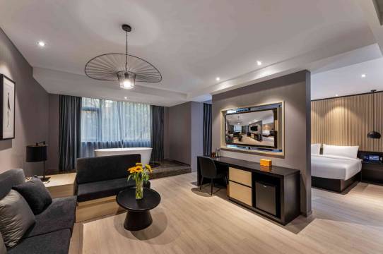 桔子酒店(苏州东太湖吴江公园店)是华住集团旗下的中端酒店品牌。酒店设计风格充满浓郁的加州风情,传达自由开放的生活气息。桔子酒店品牌致力于为当地居民和旅行中的客人打造美式自由的住宿体验,提倡拥抱健康与阳光,在轻松的氛围下,尽情享受温暖惬意的旅行时光。酒店主打热情,活力的服务,将智能科技与精妙空间的完美融合,为客人不断提供惊喜体验。