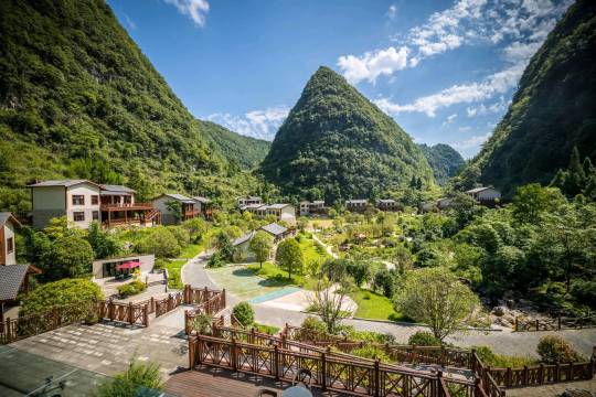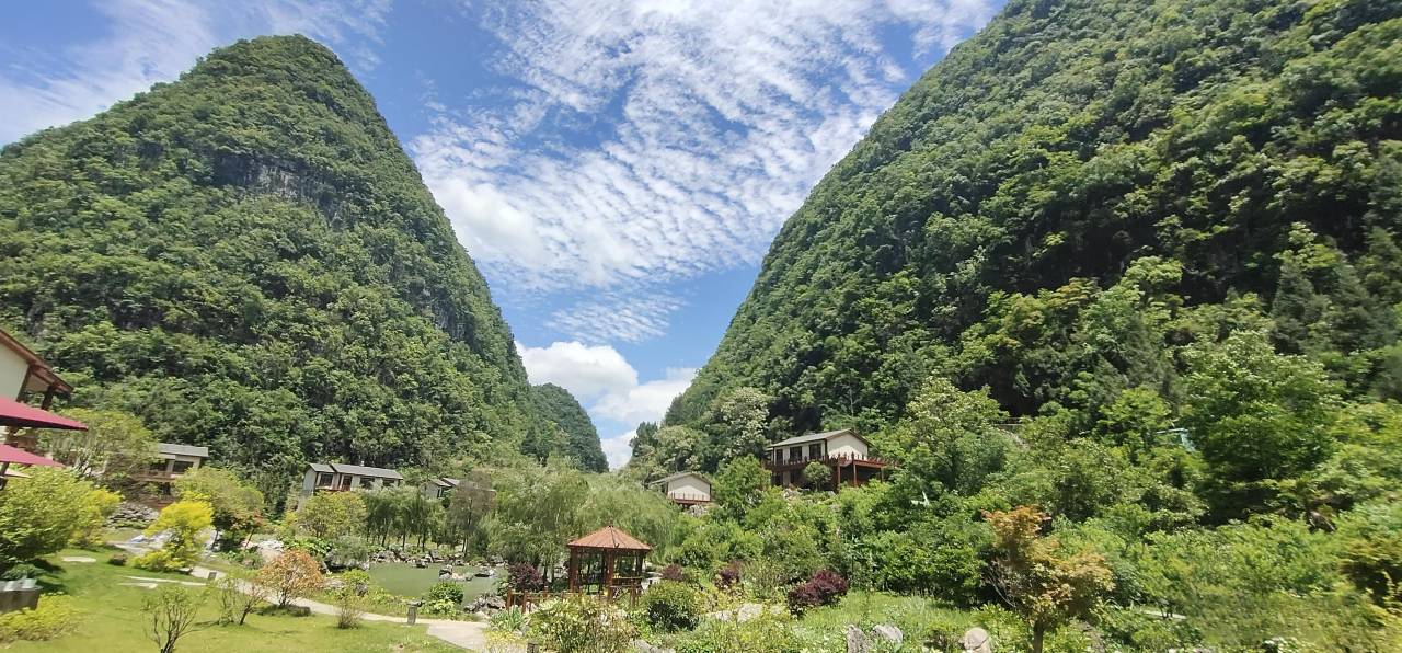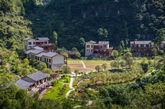 肯定是景区最好的酒店了。穿过溶洞几乎一下子来到室外桃源,山凼里的静谧庄园。尤其我们定的家庭亲子套房,房间设计和设施都很好,非常舒适。大房间中式风格,床很大,还有超大客厅、独立餐区和独立书房。户外阳台区喝茶看风景也非常惬意。带四份核心区票。唯一的槽点:牙刷掉毛。