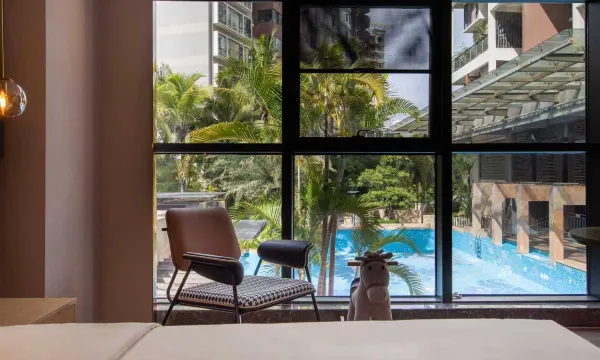酒店坐落于深圳湾畔核心区位,酒店以得天独厚的地理优势串联城市精彩。步行5分钟即达深圳湾公园海岸线,10分钟车程直达深圳湾口岸,15分钟辐射蛇口港等交通枢纽,无缝衔接粤港澳大湾区动脉。世界之窗的奇幻景观、欢乐谷的活力脉动、华侨城创意园的文艺气息、海上世界的国际风情,以及K11艺术购物地标皆在15分钟生活圈内,为商务出行与休闲度假提供双栖便利。 【人文旅居,重塑空间美学】 作为以"阅读+人文摄影"为主题的精品酒店,我们以书页为灵感,光影为笔触,打造沉浸式艺术空间。大堂书吧陈列3000余册精选读物,墙面艺术画廊定期展出在地摄影师作品,让每位客人在翻页与观展间邂逅城市文化脉络。独创的"静音楼层"与"24小时阅读角",为都市人辟出一方思想漫游的秘境。 【自然肌理,诠释健康哲学】 客房践行"减法设计"理念,采用原木色系与亚麻织物构筑自然语境。定制的裸棉生态寝具,以80支高密缎纹工艺织就,全程禁用化学漂染,天然纤维呵护敏感肌群体。搭载NASA同款记忆棉技术的普兰特智能床垫,配合人体工学枕具系统,用科技重构深度睡眠。全套APPELLES植物精油洗护系列,让沐浴化作雨林SPA体验。 【智享空间,赋能多维生活】 酒店突破传统住宿边界,打造复合型社交场域: 会议室配备4K智能会议系统,满足8-30人灵活商洽 自助洗衣房集成德国米勒洗烘一体机,配备超声波衣物护理 24小时健身房配置智能器械,方便您随时随意运动放松 星空露台定期举办摄影沙龙、读书会等主题活动 【服务温度,细节处见匠心】 我们深谙:真正的奢华源于对细节的执着。从入住时奉上的草本迎宾茶,到夜床服务中的定制书签伴手礼;从高速WiFi无缝漫游系统,到客房内可调节色温的阅读灯;从行李专员30秒响应机制,到商务中心的多国转换插头储备,200项服务标准渗透每个触点,让智能与温情完美相融。 酒店,不止是旅途驿站,更是城市探索者的灵感充电站。在这里,湾区繁华与海岸静谧仅一步之遥,人文厚度与科技温度和谐共生,期待与您共启一段"居停如归"的品质之旅。