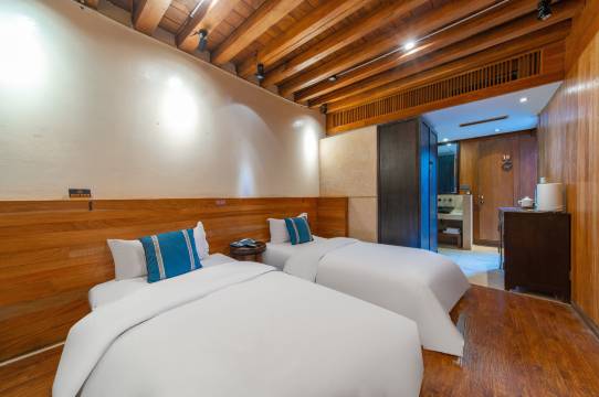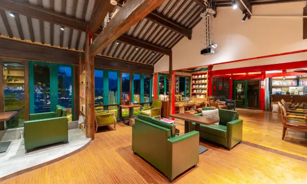 建筑形态采用了丽江古城传统的纳西风格的木结构建筑,而室内风格则不拘泥于某种特定的风格制式,融合并萃取了多种风格的特质与元素,中式的、现代的、纳西的、东南亚各种风格。超大落地窗,极佳的采光,时刻观赏蓝天白云及古城全貌。室内冷暖空调及暖气,配备浪漫温馨浴缸,客房冰箱及客房音响,私人保险箱,全覆盖无线网络