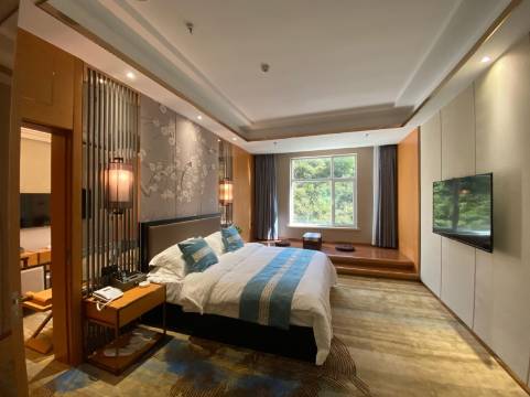 前台服务热情周到,能回答客人的各种需求,房间卫生干净,早餐也很丰富,酒店院内停车场配有充电柱,机器人服务,用餐也很方便,酒店往下走过桥大概七八分钟左右就是民生美食一条街,没想到官鹅沟景区会这么美,满意哦!