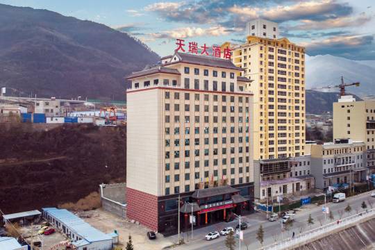 宕昌县天瑞大酒店位于甘肃省陇南市宕昌县城关镇南滨河路,北依岷江,坐拥县城中心,南距国家AAAA级官鹅沟景区3.5公里,东距国家AAAA级鹅嫚沟景区7公里,西距哈达铺红军长征纪念馆30余公里(高速需15分钟,212国道需40分钟),酒店周围环境静谧幽雅,山清水秀,是休闲、度假的理想之地。 酒店参照星级标准装修配置,环境清新优雅,并配有地下停车场,装修风格以当地文化特色与时尚现代风格相结合,属豪华精品酒店,客房配套设施齐全,有空调、液晶电视、电话、免费wifi,并提供24小时热水淋浴,装饰典雅,房间结构合理,南北通透,光线充足,每间房均设有观景阳台,让您尽情享受美好风景。 酒店一楼设有客服大厅,并经营日用百货、酒类、土特产、烟草制品等商品。二楼有11间中餐包间,4至11楼有豪华双人间、精品双人间、豪华大床房、豪华亲子间、豪华套房共126余间,12楼有完善的会议设施,可满足不同规模的会议要求。 餐饮美食、佳肴荟萃,为客人营造慢生活方式,让您回归舒适的源点,提供惬意、品味、个性的服务!