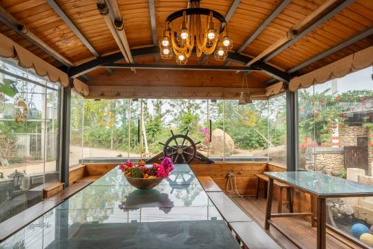 欢迎来到本店,您在涠洲岛寻找宁静与美丽的理想住所。我们的庭院位于涠洲岛公山村,靠近历史悠久的盛塘天主教堂和风情万种的贝壳沙滩,提供了一次非常好的度假体验。 在本店,我们致力于为您提供一系列舒适而便利的住宿体验。庭院原是一座由海底珊瑚沉积岩建成的古老宅邸,现经过精心改造,融合了涠洲岛特有的珊瑚石元素与稀有的古船木家具,每一处细节都体现了新中式红木生活的理念,为您打造一个充满古典雅致与现代舒适的空间。 几分钟步行距离内,您便可以到达美丽的盛塘天主教堂和贝壳沙滩,或者在庭院自带的超大观景露台上享受宁静的日出。庭院的地理位置优越,让您探索涠洲岛的各大景点变得尤为便捷,如鳄鱼山、五彩滩、滴水丹屏和石螺口等。 为了让您的旅行更加便利舒适,本店提供了多项服务,包括从北海国际客运港至涠洲岛西角客运码头的豪华客轮接送服务。在这里,您不仅能享受到舒适的住宿和周到的客户服务,还可以轻松参加我们丰富多彩的活动,深入探索这个美丽而神秘的海岛。 本店还提供了多种活动选择,包括定制接送服务、旅游行程、电动车和观光车租赁等。对于喜欢海上活动的客人,我们也提供出海打渔、赶海、观鲸和潜水等特色活动,让您充分感受大海的魅力。 我们的厨师将为您准备地道的海鲜美食,选用新鲜、品质上乘的食材,为您的味蕾带来涠洲岛的美味。当然,您也可以前往南湾市场自行挑选心仪的海鲜,然后将其交给我们的厨师,为您定制制作。 本店注重细节和服务,为您提供舒适、轻松和愉悦的体验,让您在这里度过难忘的时光,留下珍贵的回忆。无论您是寻找浪漫的情侣假期、亲子出游的家庭,还是结伴而行的旅行者,本店都是您来涠洲岛的优选之地。我们以宜人的环境、耐心细致的服务,热忱地欢迎您一同探索涠洲岛的美景!