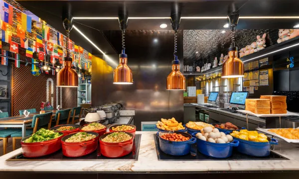 总体是不错的,交通方便,很多美食店,酒店是一层,比较小型,房间也是小型的,虽小但很别致,所需物品都齐全,智能控制设备,比较现代化,唯一缺点就是厕所是透明的,这边提供早餐和夜宵,这边的早餐惊艳到我,我以为款式比较少,但是早餐设计很精致,中式英式都有,早餐所需的营养都有被照顾到,我很喜欢他们家的红薯,很好吃,比我之前吃过的一家好吃😋