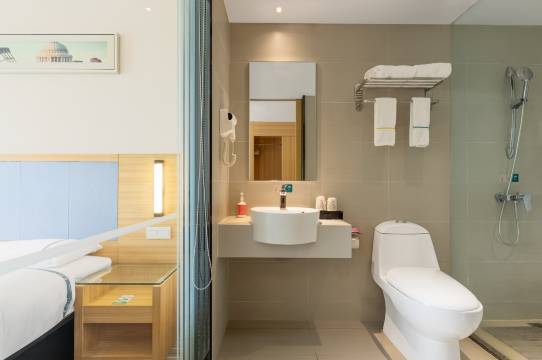 酒店环境优雅位置优越,前台小姐姐服务态度也是非常满意的,连锁酒店品质确实是有保障的
