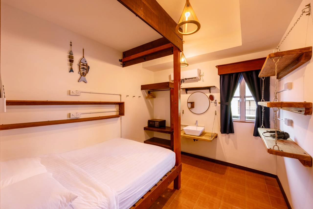 海狼位于镇中心绝对是仙本那小镇上的不二之选:干净卫生便利有度。一尘不染、出入换鞋、有自助供应:面包方便面咖啡奶茶,任君选择。大堂有摄像头,门禁严实,把行李存放一整天都可以,马拉服务生都很nice。二楼有公用洗衣机,非常适合三两知己浮潜回来要洗一堆的衣服。离各个码头都只是5-15分钟步行,离超市和市场也是5-10分钟。周围有果汁店餐厅购物店,很是便利。是一间有自由度有温度的民宿