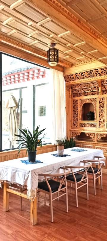 民宿海拔较低,海拔2100米,无高反,气候温和。配套藏式风格餐厅、雪山景观露台、多功能艺术展厅、停车区等。