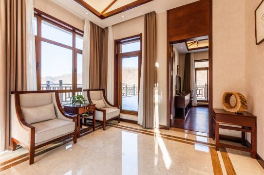 一进房间,就被宽敞明亮的空间吸引,50平米的面积,一点也不觉得局促。布置简约又不失温馨,沙发、书桌、衣柜等设施一应俱全,布局合理。床铺软硬适中,搭配着柔软的床品,晚上我睡得特别香。拉开窗帘,窗外的园林景观映入眼帘,郁郁葱葱的绿植,蜿蜒的小径,还有远处若隐若现的山峦,让人心情瞬间舒畅,就像住进了大自然的怀抱。