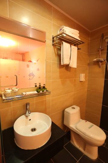 前台有位热情的美女接待,怕特惠房住两个人休息不好,特意给免费升级了大床房,很受感动哦。房间干净整洁安静,装修也不错,卫生间也很宽敞的,整体感觉很温馨,离别时前台美女热情的送别语更是令人流连忘返,以后去梅河,我只住你家!