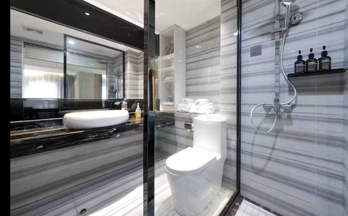 免费停车,出行方便周边繁华离地铁口几百米,步行几分钟就到,公交门口就有,房间很干净面积较大,床品柔软舒适,桌面浴室一尘不染连角落都没灰尘,整洁度满分,住得特别舒心