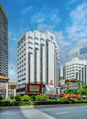 酒店位于深圳市罗湖区东门南路3018号外贸食出大厦,座落在市中心繁华的黄金地段,交通十分便捷,楼下有地铁5号线湖贝站F出口,附近有地铁1号线国贸站AB出口和2号线湖贝站D出口。闻名中外的东门步行街、金光华购物广场、阳光酒店、彭年酒店、国贸大厦、皇室假期、向西村美食一条街等大型娱乐、休闲场所和购物中心遍布其周边。罗湖口岸、罗湖火车站、长途汽车站近在咫尺。酒店设有各种类型的客房,酒店客房功能设施齐全,中央空调、迷你吧、数字电视、宽带上网及国际国内直拨电话,面积从30-103平方米不等,房型多样化,有100寸巨幕电影房、豪华舒适双人房、舒适大床房、豪华精品现代套房等十余种,酒店房间视野开阔,温馨舒适,空气清新,是您集旅游、购物、娱乐、商贸洽谈及休息的理想酒店。