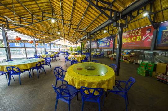 农家院前楼有电梯,餐厅、会议室。餐厅有室内外餐厅,可容纳200人同时用餐,另有大小会议室,小会议室可容纳20人圆桌会议;大型会议室配备齐全,可容纳300人开会。