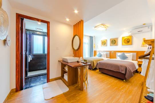 装修比较好,用品也不错。客栈离开海边很近,真的能听海。半月湾度假村人气不太旺,可能还没到旺季。适合几家人一起去住住。