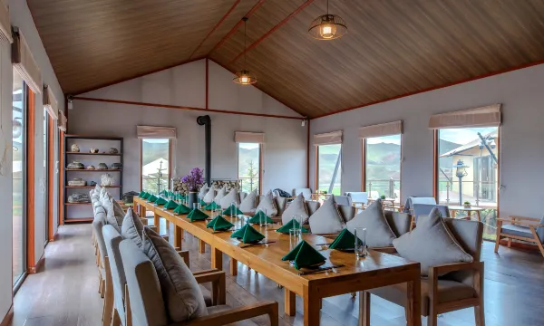 最让人感到满意的是营地的服务,预订酒店后,酒店就主动联系并建立了服务群,询问到达时间和用餐安排,我们晚上9点半才到,服务人员在门口接到我们还把行李送到房间,还给我们送上当地的酸奶。第二天的早餐也是非常的惊喜,整体非常满意,必须五星好评!