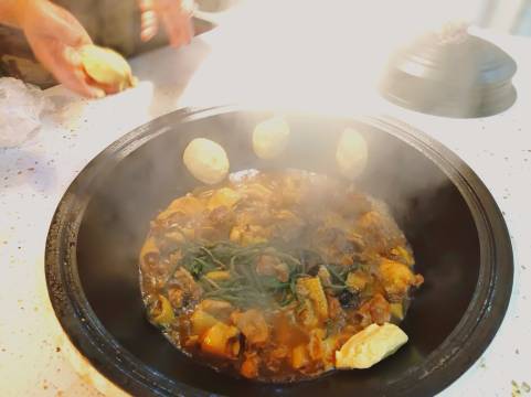 整洁温馨的农家客栈,老板一家人超级热情,住在这里有种住亲戚家的感觉。客栈里免费提供照相用的东北大花袄和皮毛帽子,还赠送了冻梨。第二天我们去看江边日出,老板一大早开车送我们,帮我们找最好的拍照位置,还专门带我们去雾凇岛,老板女儿给我们做了讲解员。 午饭的铁锅炖排骨特别好吃,大人孩子都吃撑了。这次没看到雾凇,有些遗憾,但看了江上日出、放了烟花、吃了正宗的铁锅炖,体验了满族风情,抱了白狐狸,坐了狗拉爬犁,大人孩子都很开心,感觉是性价比较高的一次旅行。