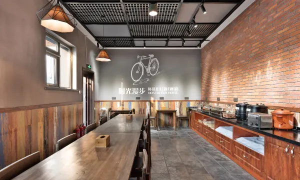酒店以怀旧为主题,环境优雅安静,主题特色浓郁。客房内老榆树实木家具、拨盘电话、复古台灯、搪瓷茶杯,以及75幅迥然不同的手绘壁画,怀旧元素以创意的形式点点滴滴渗透在酒店的设计理念中。